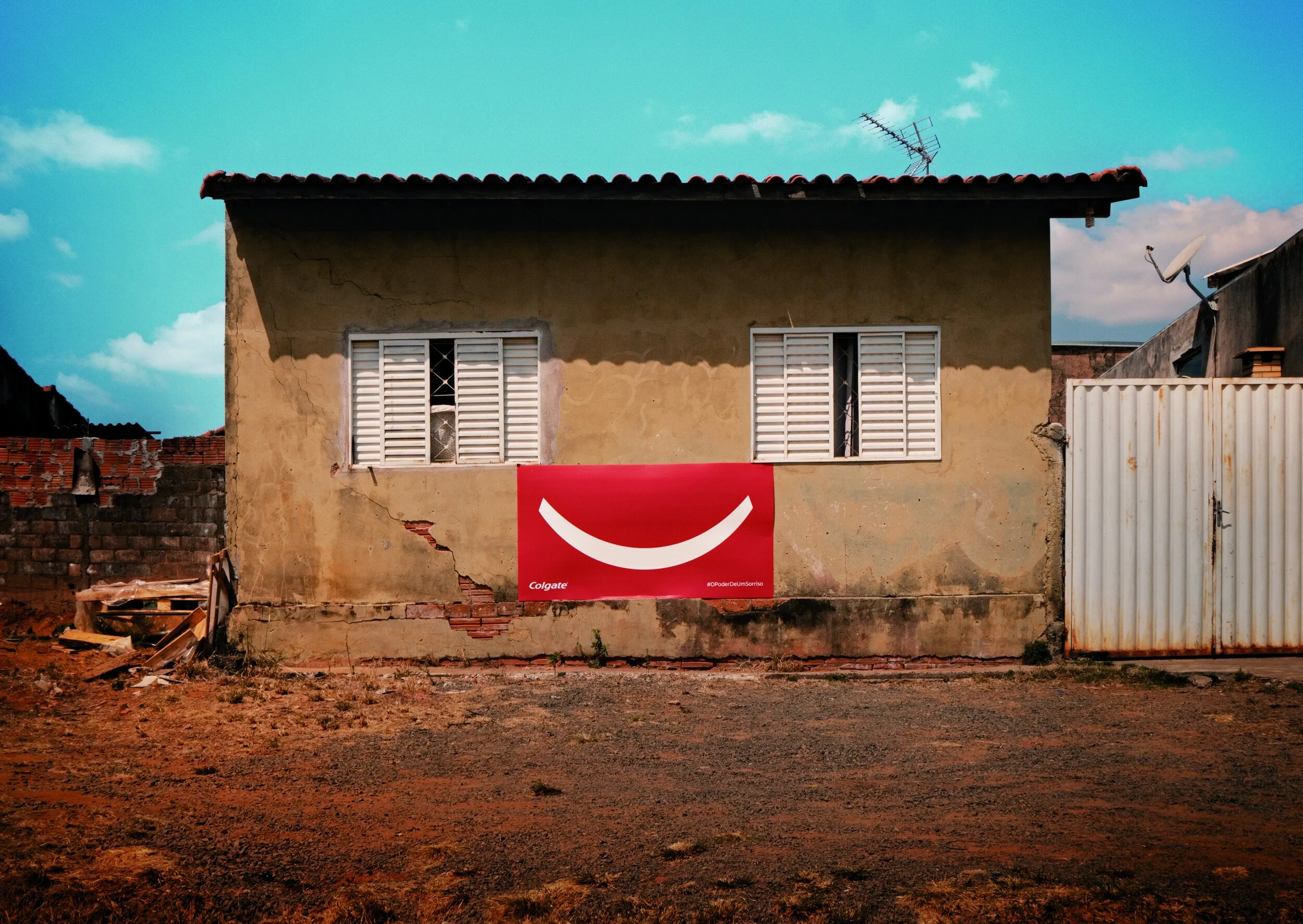 In partnership with Outdoor Social, a community-led producing company, Colgate entered 11 low-income peripheral neighborhoods, the ones with the Free Oral Care program, filling them with billboards that used people’s houses to form smiling faces.